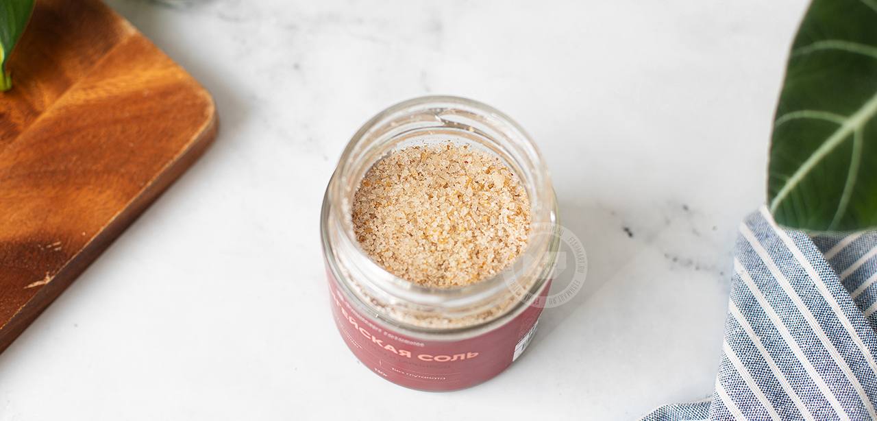 Адыгейская соль изготовлена по традиционному рецепту с использованием не сухого, a свежего чеснока, она получается гораздо более ароматной.