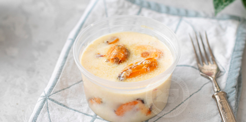 Мидии, соус (сливки 33%, мука пшеничная, соль, специи (перец красный, перец зеленый, чеснок))