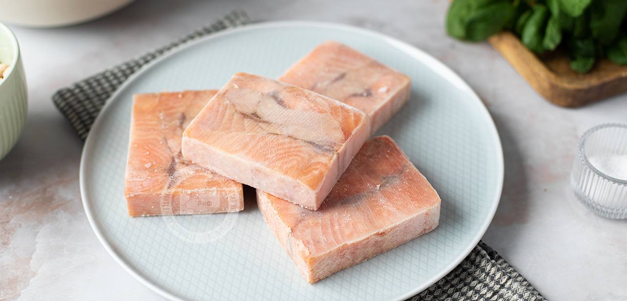 Формат квадратиков придется вам по душе, если в семье употребляет рыбу только один человек или вы только начинаете ввод прикорма ребенку, поскольку квадратики легко отделяются друг от друга и вам не придется готовить сразу всю упаковку. Кета рекомендована детям для прикорма с 6 месяцев.
