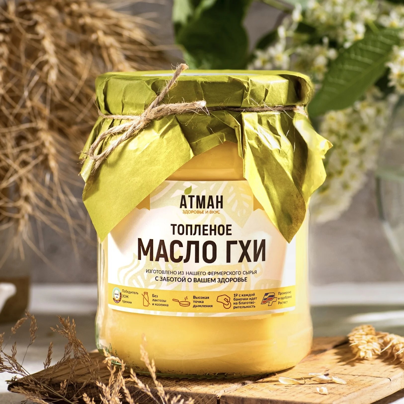 Особый вид топленого масла, которое мы бережно протапливаем около 6 часов из своего фермерского сливочного масла с соблюдением традиций аюрведы, после чего вручную очищается, процеживается и медленно, естественным образом охлаждается.