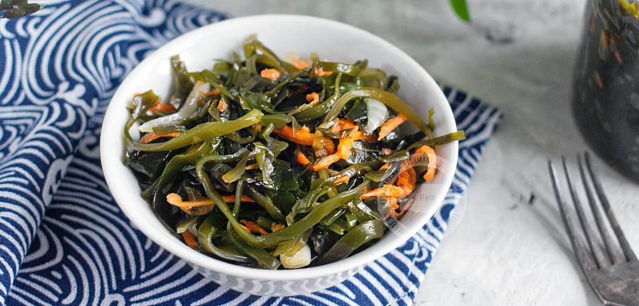 морская капуста, лук, морковь, подсолнечное масло, уксус, соль, сахар, специи